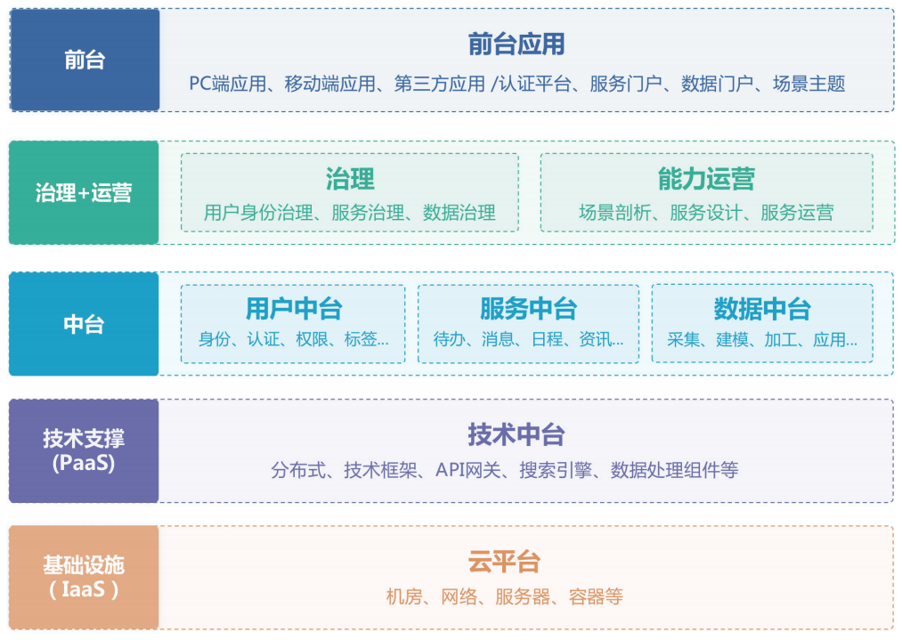 “中臺”是一種設(shè)計與治理的建設(shè)思路,表面上是銜接“前臺”和“后臺”的技術(shù)架構(gòu),實際上也是一種高效管理的理念,強調(diào)通過治理重塑業(yè)務(wù)和數(shù)據(jù)流程,打通業(yè)務(wù)間的壁壘,提升用戶服務(wù)體驗。從技術(shù)角度推動構(gòu)建更創(chuàng)新靈活的組織機制、業(yè)務(wù)機制、數(shù)據(jù)機制,建設(shè)智慧校園“標(biāo)準(zhǔn)·復(fù)用·賦能”服務(wù)新生態(tài)。
